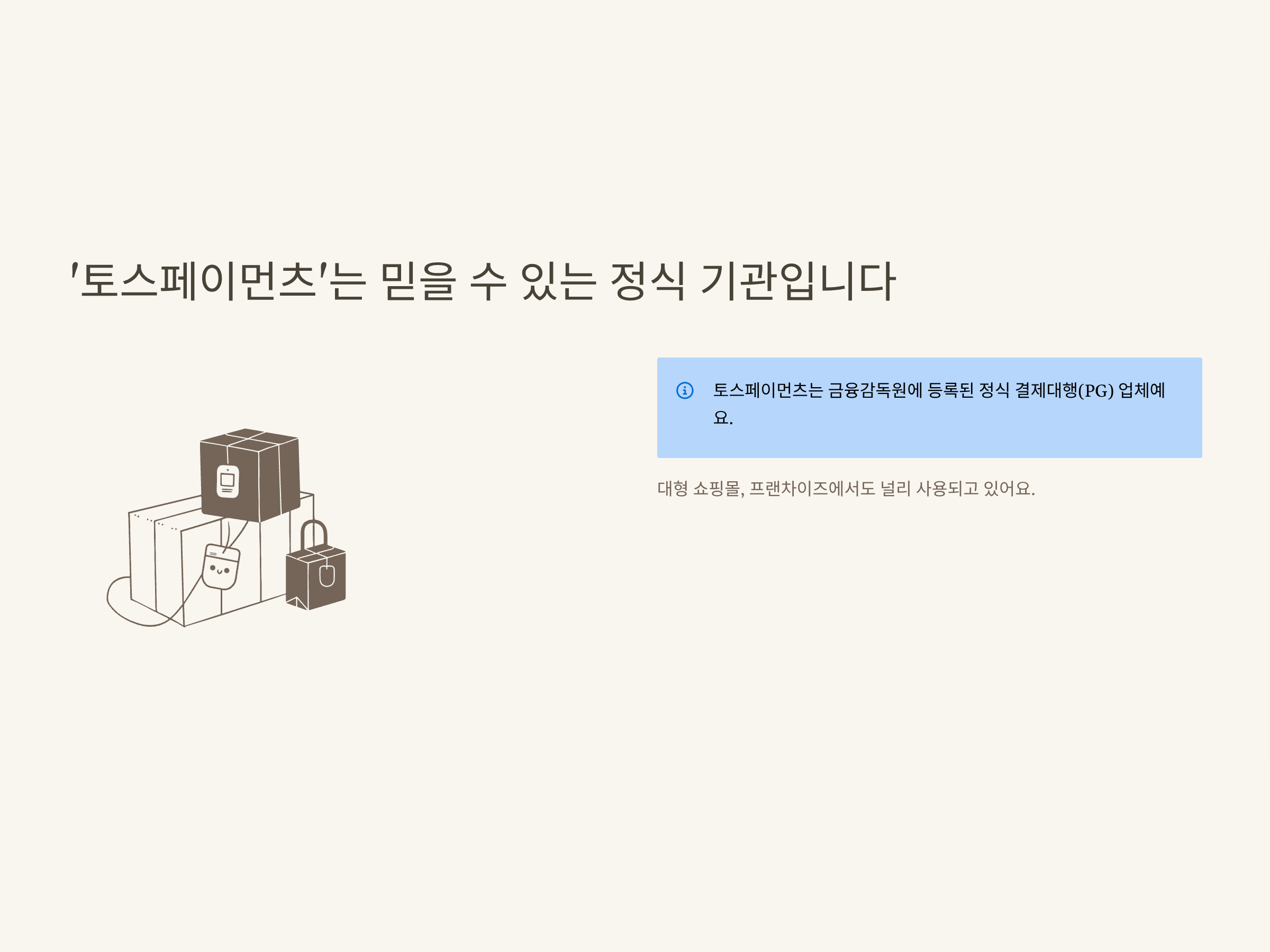 | 신뢰성 | 금융기관 등록, 정식 서비스 | 토스페이먼츠 소개 |